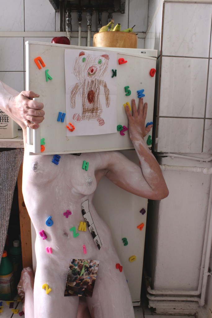 The series of self-portraits Camouflaged (M)other was created in the tension between feminist motherhood and artistic practice during the 2020 pandemic lockdown.